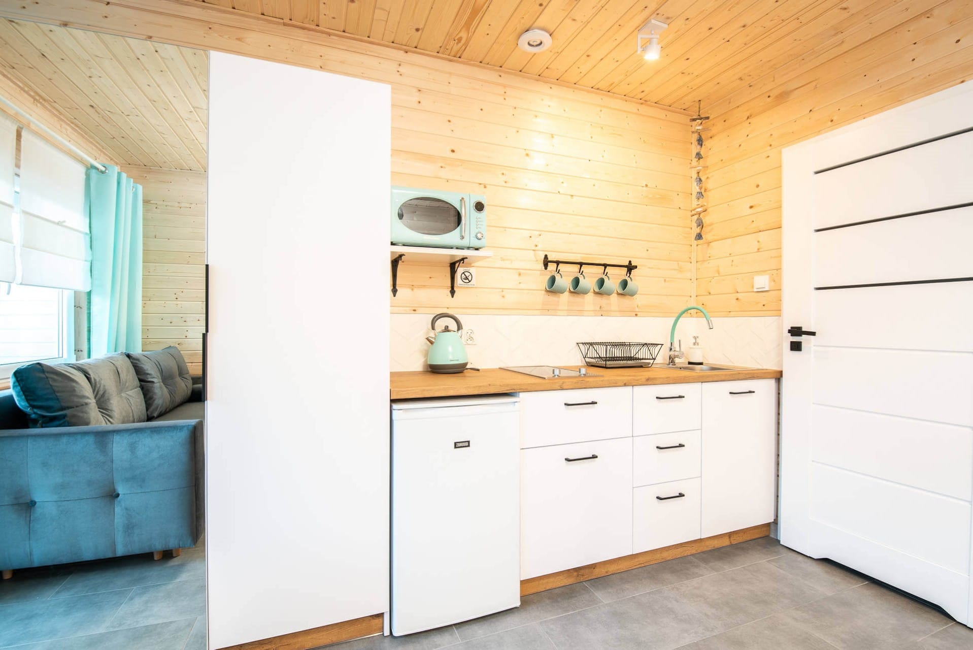 Aneks kuchenny został wyposażony w niezbędne sprzęty, które umożliwią przygotowanie posiłku dla całej rodziny.